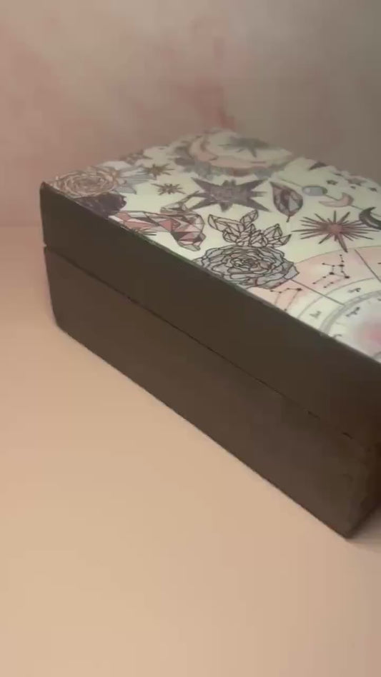 Wooden Celestial Storage Box, Moon and Stars Trinket Box, Boho Jewelry Organizer, Witchy Keepsake Box, Gift for Astrology Lovers