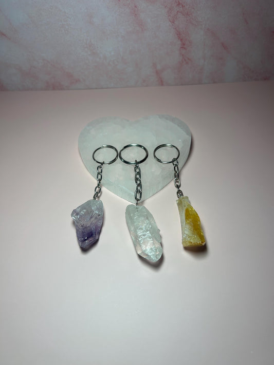 Crystal Point Keychain – Clear Quartz, Amethyst, or Citrine Key Ring – Healing Crystal Keychain for Protection, Clarity & Abundance