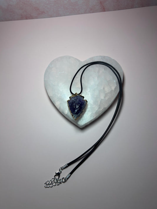 Gold Edge Amethyst Arrowhead Pendant, Raw Crystal Protection Necklace for Intuition, Calm & Healing, Spiritual Jewelry Gift